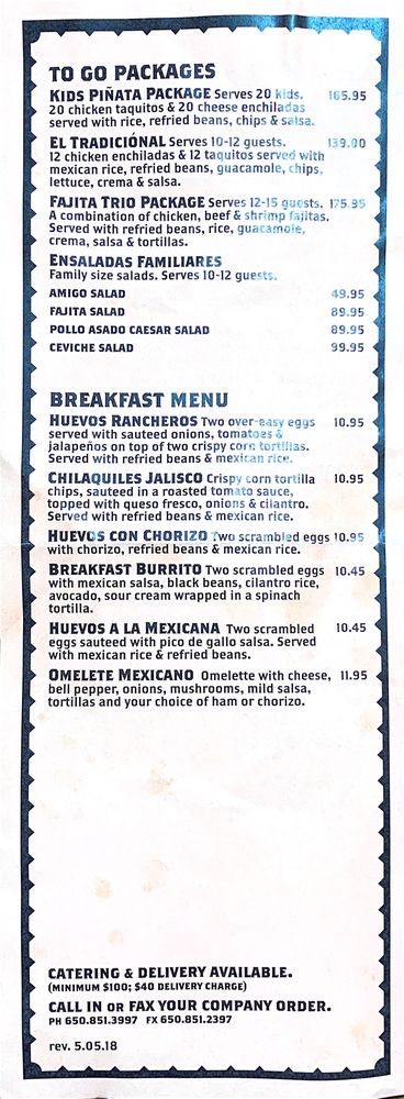 Amigos Grill Cocina Mexicana Y Cantina Menu